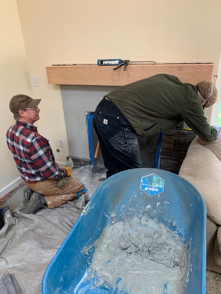 We bought about $100 worth of stone from Northstar Stone & Landscape Supply. My dad is a contractor so he was able to show Seth how to place hardy backer against the 2x4s, place metal lath, then place a scratch coat to prep it for the stone.