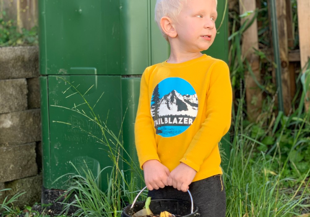 I’m no composting expert, but I know composting can seem really overwhelming to start. This is what our family does and it is VERY simple: