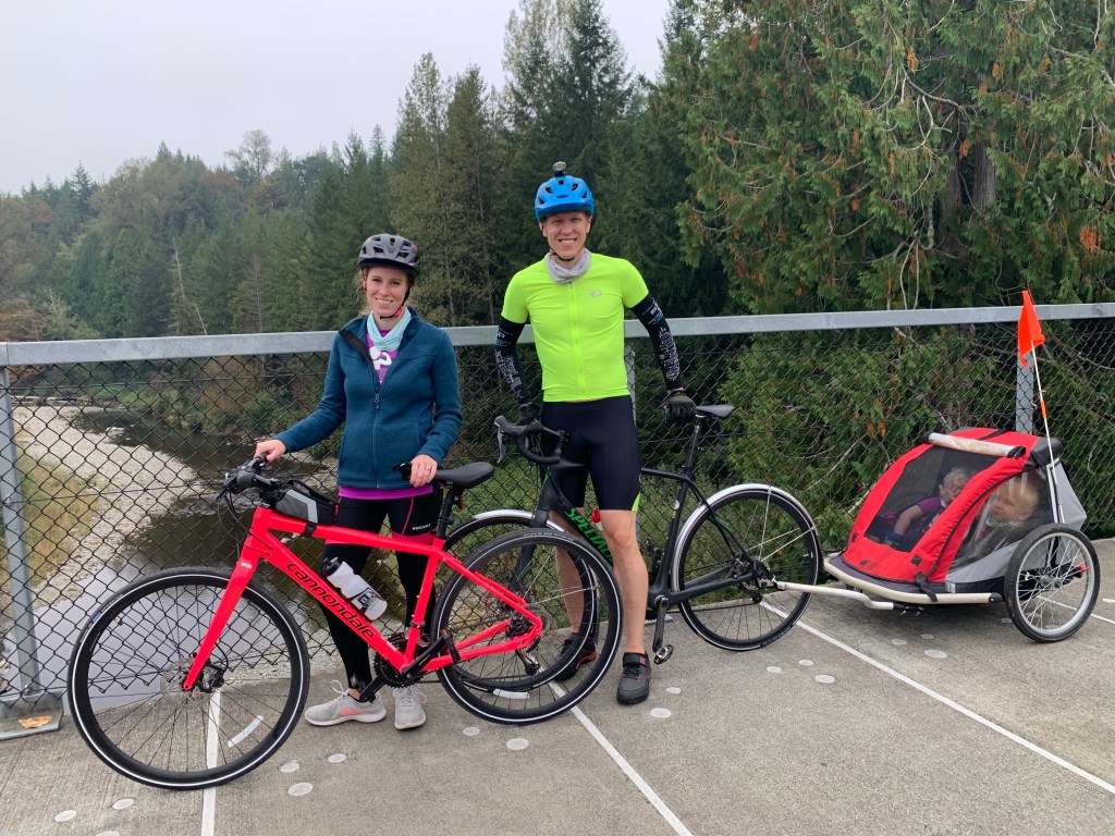 It is a little bit of a drive to get there (about an hour from Bellingham), but it is a 30-mile (one way), completely paved and off the road biking trail! It is perfect for kids! Our kids are not very confident on bikes yet so Seth still tows them in our bike trailer (close to 100 pounds!)