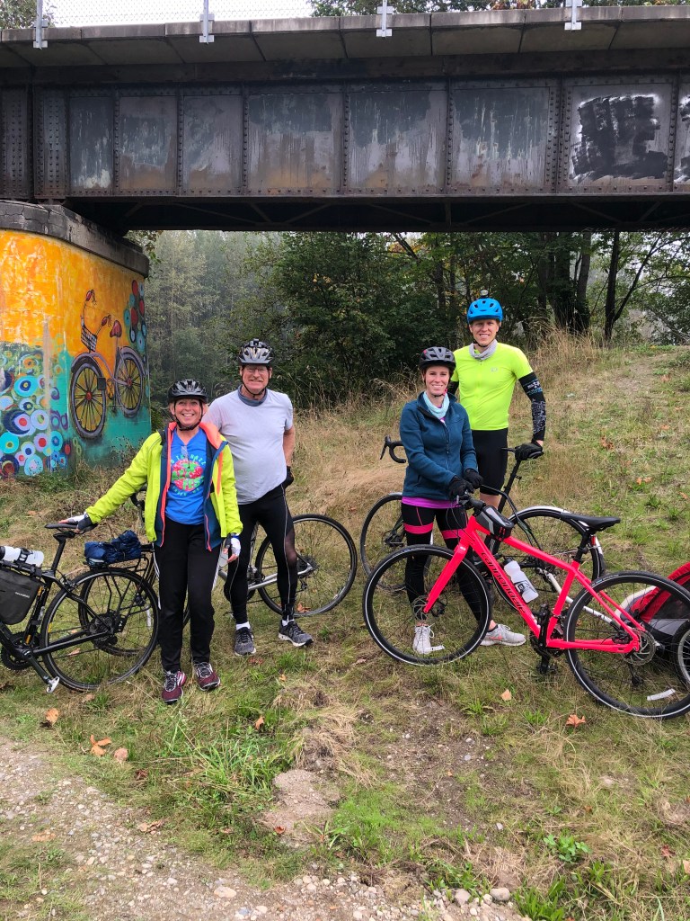 We have been wearing neck gaiters while biking because they are easier than a mask to take on and off quickly when passing others!