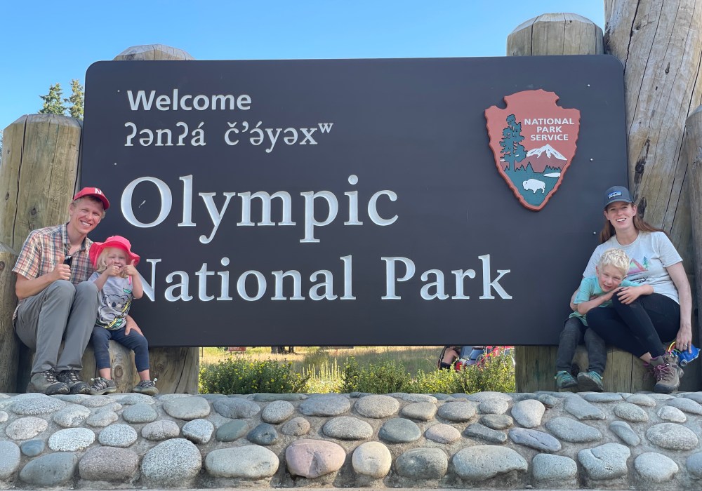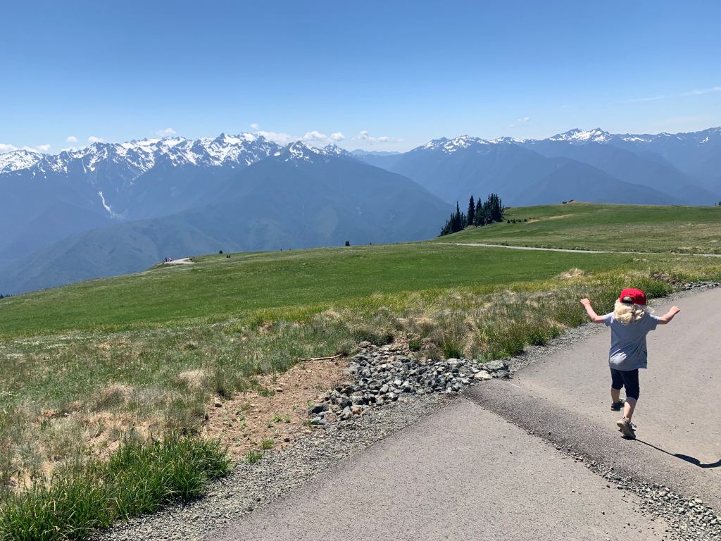 Saturday we spent the day in Olympic National Park. We did a 3.2 mile hike to the top of Hurricane Hill. The 360 views form the top are incredible! We picked up Junior Ranger booklets from the ranger station which the kids worked on while we were in the park and at the campsite the next morning. We have an annual National Park pass, otherwise the entry fee would be $30 for Olympic National Park. Hurricane Hill is paved the entire way so would be accessible for a stroller or technically a wheelchair – but you would want to make sure you had really good brakes on the wheelchair since it has 650 feet of elevation gain.